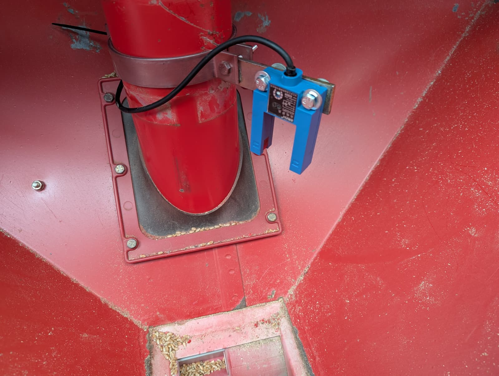 Die Niveaumessung erkennt zuverlässig den Füllstand innerhalb des Saatguttanks. Der Sensor wird einfach auf der Höhe des gewünschten Niveaus platziert. Sinkt das Saatgut unter den Sensor, löst dieser automatisch ein akustisches und visuelles Signal aus.